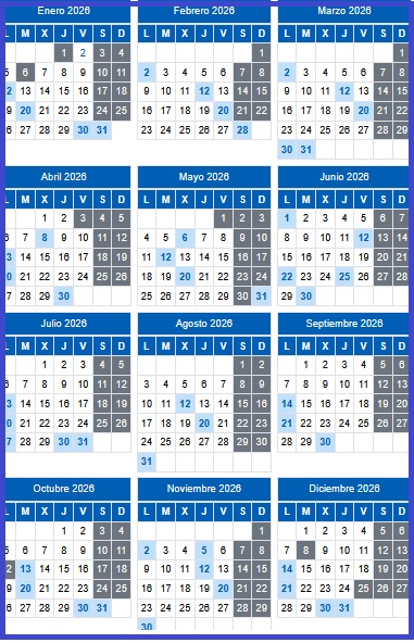 | Modelo 303 y 309 | Obligación trimestral Con carácter general: domiciliación del 1 al 25 de enero y del 1 al 15 de abril, julio y octubre 4T 25: 1 al 27 de enero 1T 26: 1 al 15 de abril 2T 26: 1 al 15 de julio 3T 26: 1 al 15 de octubre | Obligación trimestral Con carácter general: presentación del 1 al 30 de enero y del 1 al 20 de abril, julio y octubre 4T 25: 1 al 30 de enero 1T 26: 1 al 20 de abril 2T 26: 1 al 20 de julio 3T 26: 1 al 20 de octubre |