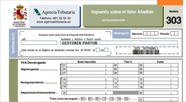 | ObligaciĂłn de liquidar. Obligados a presentar IVA: -AutĂłnomos y empresas -Sociedades inactivas que no hayan modificado 036 –Arrendadores de locales –Arrendadores de garajes | ![]() Presentar Modelo 303 cada trimestre o cada mes. |